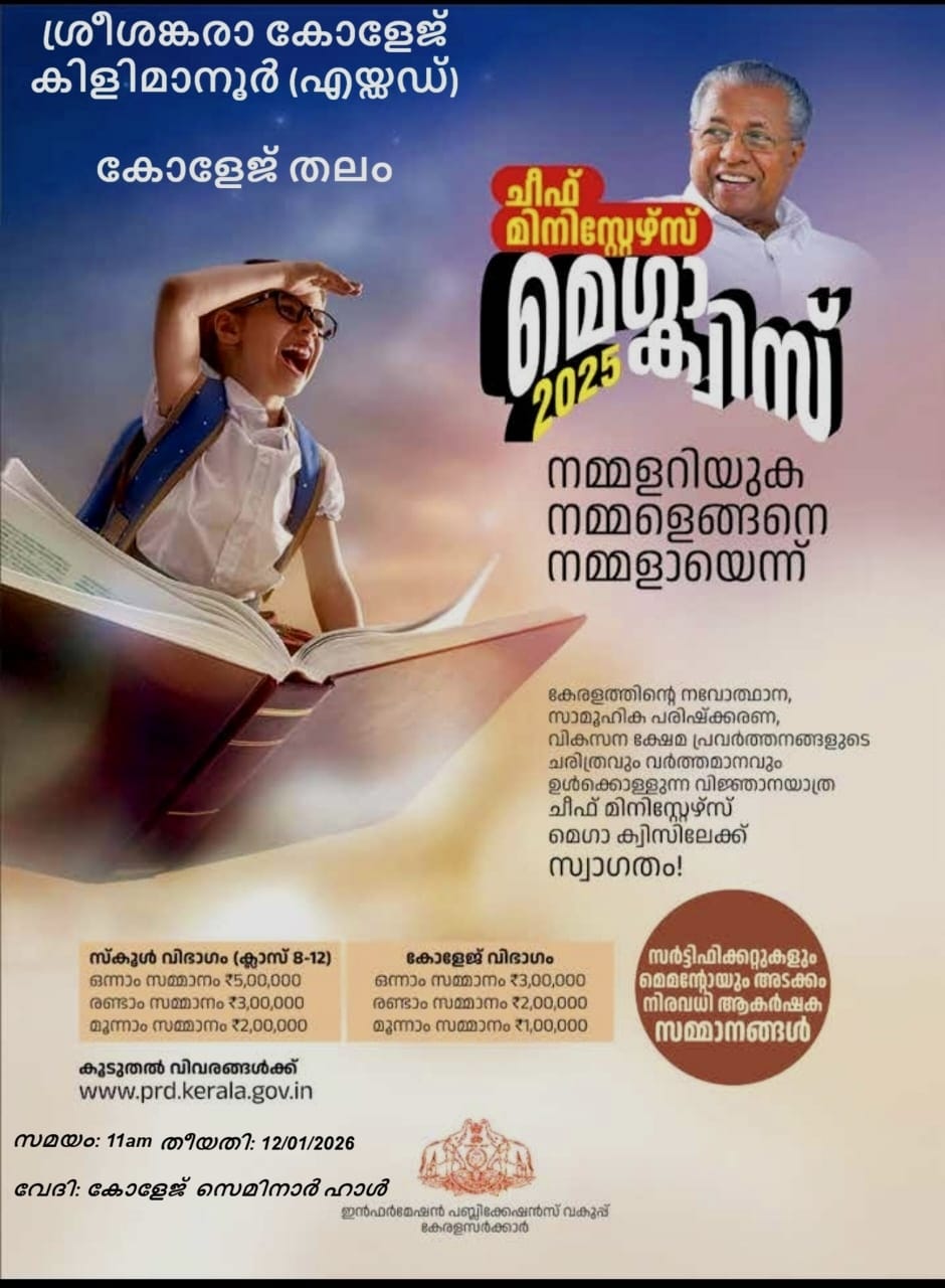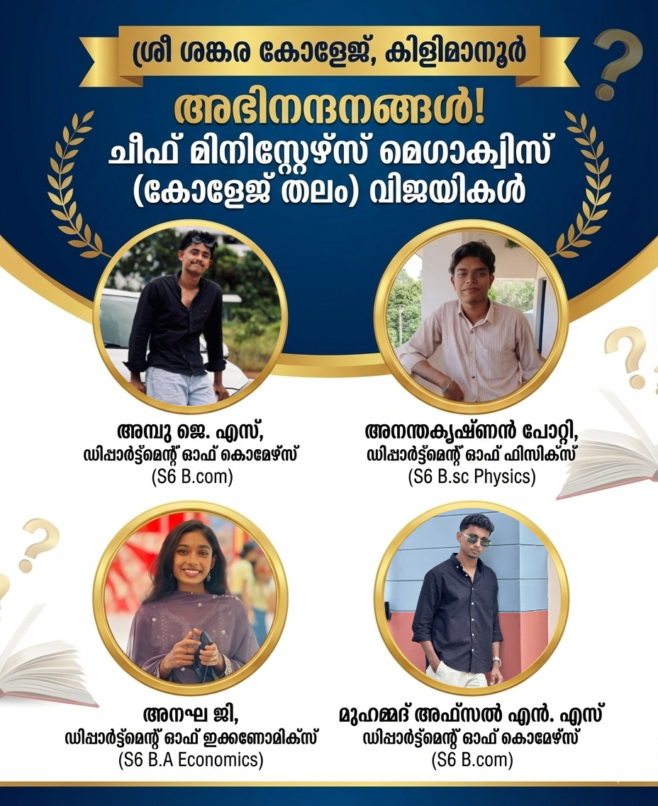 Sree Sankara College (SSC), affiliated to the University of Kerala, is a recently established arts and science in aided sector at Nagaroor, Kilimanoor. This is yet another great achievement of Sree Sankara trust which holds aloft the principles of Jagadguru Adi Sankara and which have carved an enviable place in the field of higher education.
